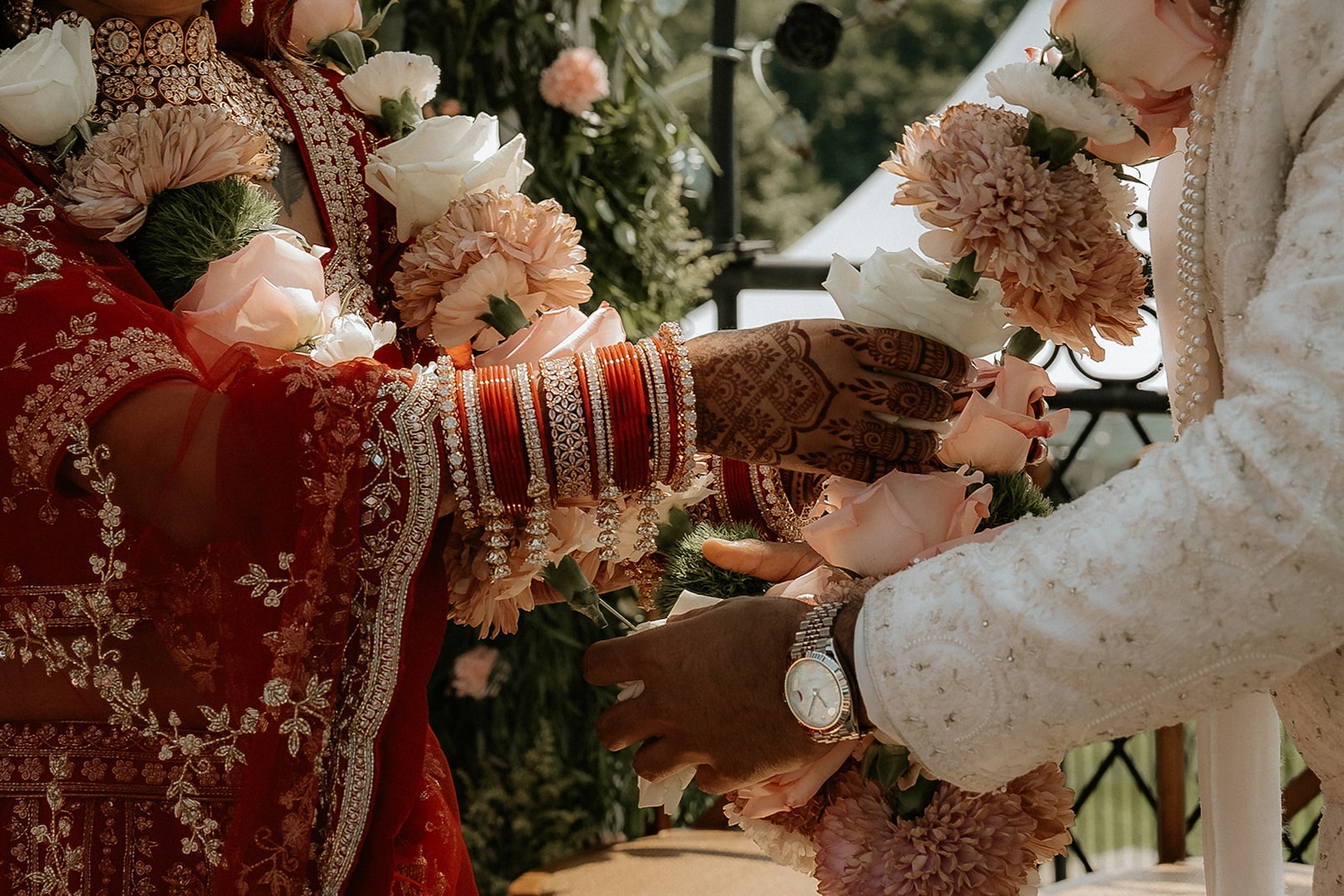 Leur cérémonie s'est déroulée sur une île, dans les jardins à la française d'une seigneurie, où les pastels doux du décor flirtaient avec les tenues colorées et ornées des invités. Le cocktail et la réception se sont déroulés dans l'emblématique Château Frontenac, surplombant le Vieux-Québec.